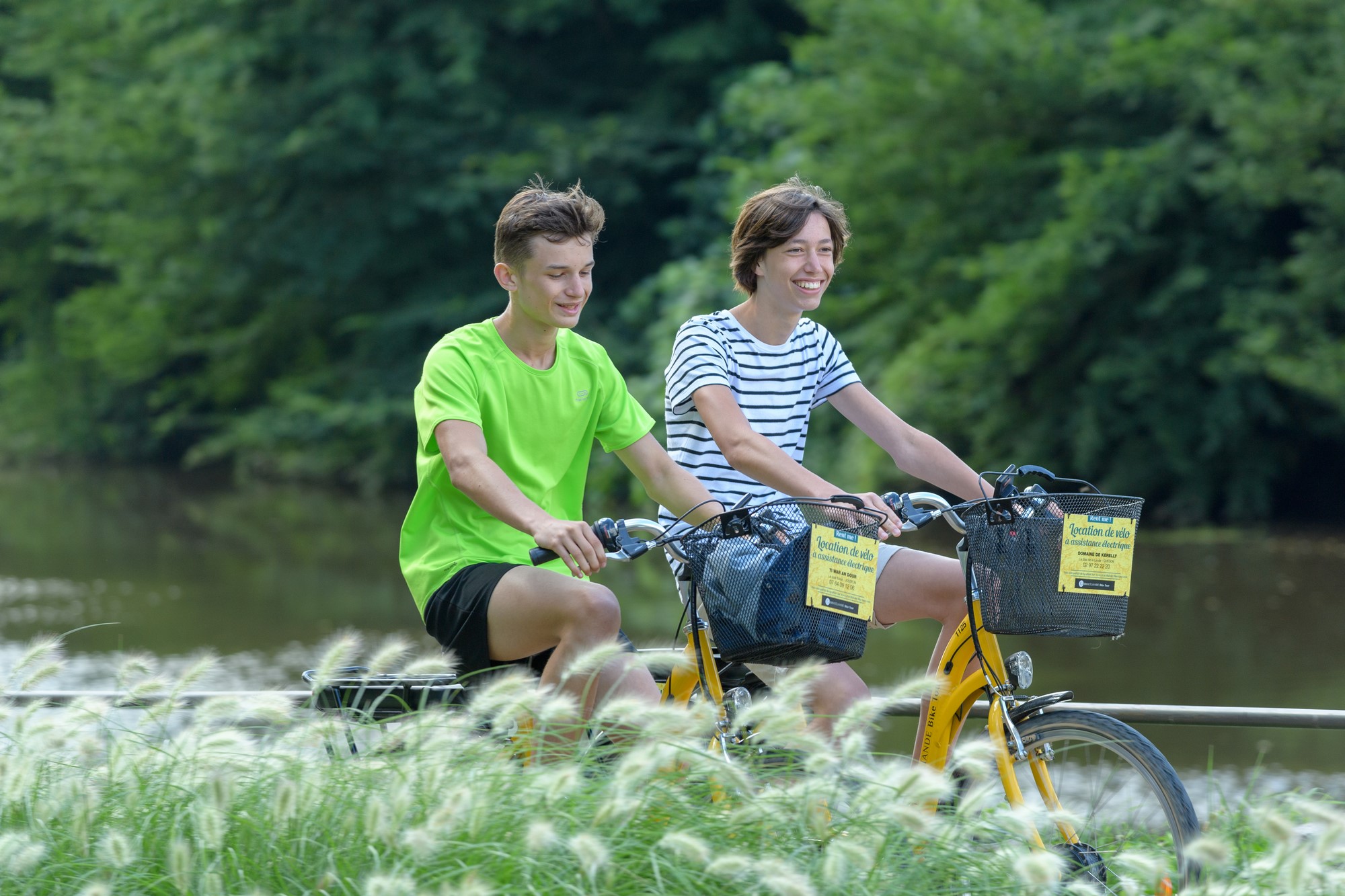 Please come to the ticket office at Quai fluvial de Josselin to rent your bike.